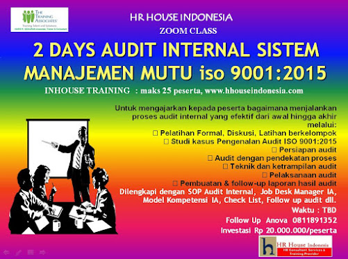 2 DAYS INHOUSE TRAINING : AUDIT INTERNAL SISTEM MANAJEMEN MUTU 1SO 9001: 2015 & 1SO 90011: 2018.