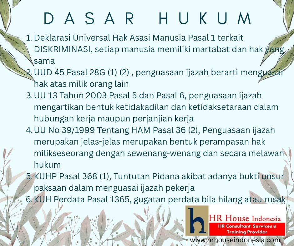 DASAR HUKUM PENGUASAAN ATAU PENAHAN IJAZAH PEKERJA