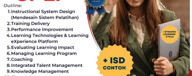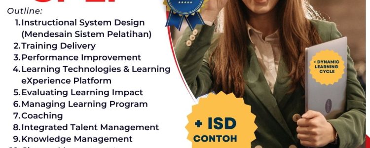 Outlines: 1. Instructional System Design (Mendesain Sistem Pelatihan) 2. Training Delivery 3. Performance Improvement 4. Learning Technologies & Learning eXperience Platform 5. Evaluating Learning Impact 6. Managing Learning Program 7. Coaching 8. Integrated Talent Management 9. Knowledge Management 10. Change Management 11. Learning & Development Trend 2025