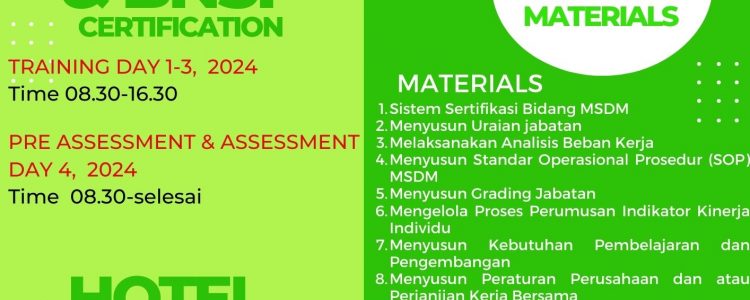 Pelatihan dan Sertifikasi BNSP Bidang MSDM