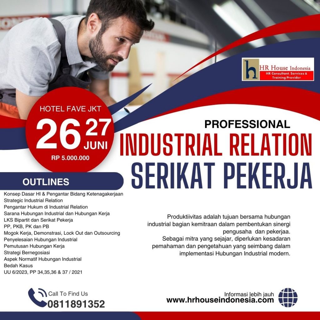 Workshop ini disajikan secara rinci pengetahuan dan praktek Industrial Relations (IR) yang dibagi kedalam 2 (dua) ranah, yaitu ranah peningkatan kerjasama dalam rangka membangun kesamaan padangan dan tujuan antara perusahaan dengan pekerja serta pemangku kepentingan lainnya, Pokok-pokok yang akan dibahas antara lain konsep dasar kerjasama pekerja dan management, perbedaan kerjasama dengan perundingan bersama, Kemudian bagaimana memulai dan mengelola dan melakukan monitoringnya. kemudian disampaikan pula pokok-pokok hukum ketenagakerjaan yang mutlak mendapat perhatian pula, dari sejak dimulai adanya hubungan kerja, kemudian selama berlangsungnya hubungan kerja, sampai pada saat/setelah berakhirnya hubungan kerja dengan rujukan utamanya adalah peraturan-peraturan ketenagakerjaan yang mengatur hak dan kewajiban para pihak dalam hubungan kerja (perusahaan maupun pekerja/buruh) serta hubungannya dengan SP/SB dan pemerintah dalam Peraturan perundang-undangan di bidang ketenagakerjaan yang terkait.