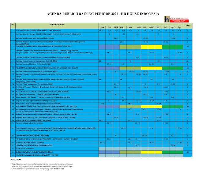 Dear Bapak dan Ibu Yth,Berikut adalah agenda program pendampingan project OD Organization Development dan Agenda public Training periode 2021. SalamAnovaHR HOUSE INDONESIA.www.hrhouseindonesia.com