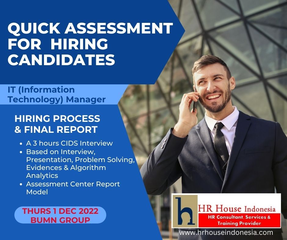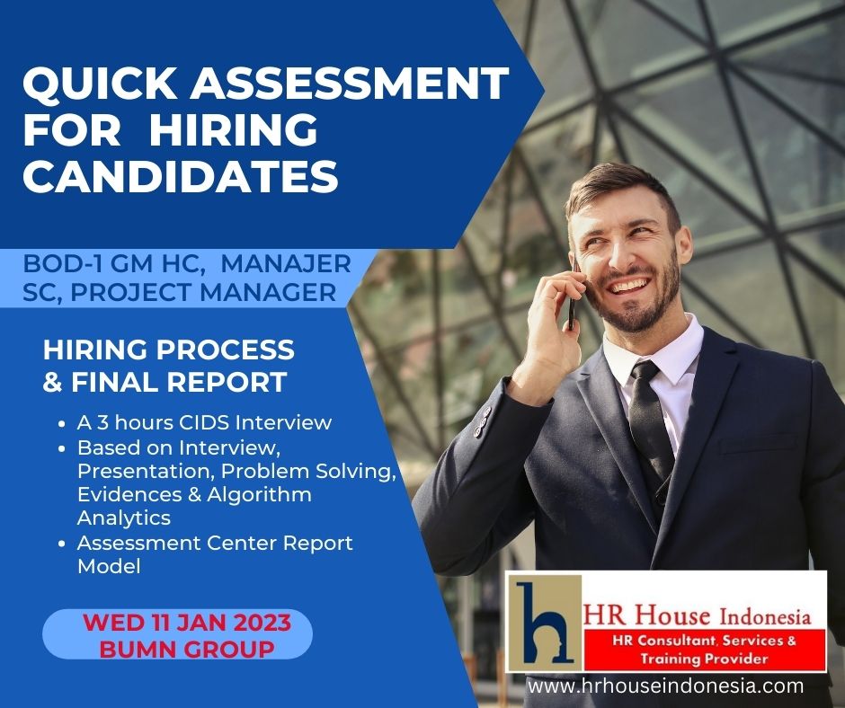 A 3-Hour Chronological, In-depth, Structured interview of finalist candidates for BOD-1 level a BUMN group.(QUICK RESULT ASSESSMENT WITH HR HOUSE INDONESIA).