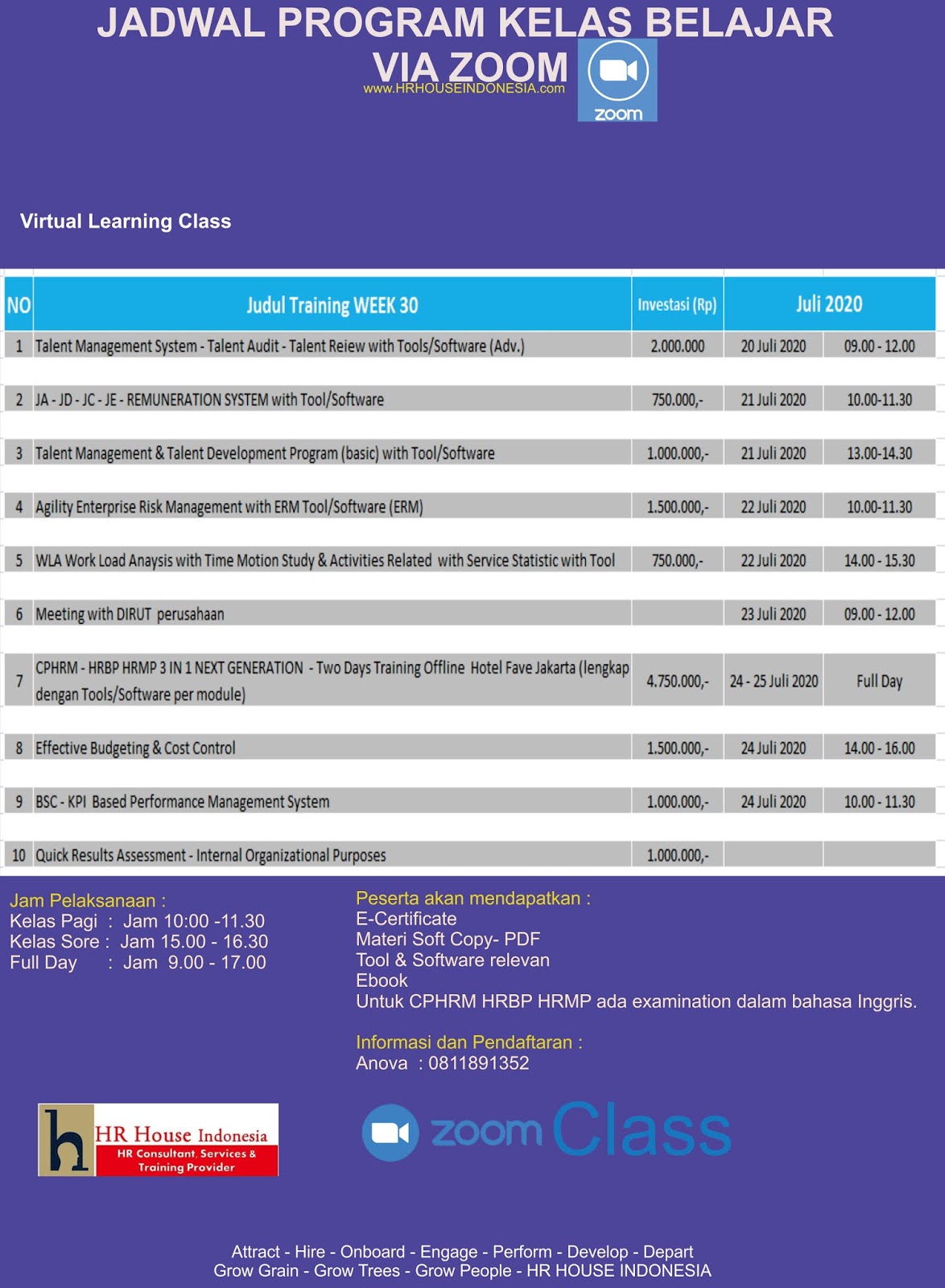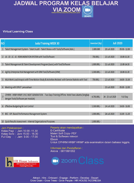 Berikut adalah jadwal Virtual learning JULY 2020.