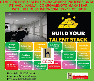 LATAR BELAKANG TRAINING CERTIFIED TALENT MANAGEMENT PROFESSIONAL Workshop dua hari ini akan membahas tuntas implementasi talent management, konsep dan aplikasinya bagi para praktisi SDM dan pimpinan perusahaan. Peserta akan di pandu dalam melakukan talent review cycle meliputi, dari proses pemetaan (mapping), seleksi, pengembangan dan strategi retensi bagi para key talent. Di banyak kasus beberapa strategi bsinis tidak selaras atau belum sejalan dengan strategi talent manajmen. Hal ini dikarenakan beberapa sebab antara lain : Manajer senior tidak meluangkan waktu yang cukup terhadap talent management, CEO dan pemimpin senior tidak cukup terlibat dalam pembentukan strategi talent management, Manajer lini tidak memerhatikan underperformer employee secara efektif bahkan ketika sudah dalam keadaan kondisi kritis, dan masih banyak hal lain yang akan dikupas. Studi kasus dari perusahaan-perusahaan global (PEPSI, MICROSOFT, HEINEKEN, CARGILL, Surat kabar ternama, UNILEVER, ASTRA dll) yang telah berhasil dalam talent management akan di kupas tuntas dalam workshop ini, sehingga setiap peserta akan dapat melakukan implementasi langsung di dalam perusahaannya selepas mengikuti kegiatan ini dengan menggunakan contoh-contoh real beserta templates & penggunaannya. Bagaimana perusahaan-perusahaan kelas dunia sukses dalam Talent Management ? Kebutuhan talent semakin meningkat siring dengan berjalannya waktu, diperkirakan kebutuhan akan orang-orang hebat atau A player atau TALENT semakin meningkat terjadi perbedaan antara ketersediaan dan permintaan talent di berbagai negara. Sementara di tahun ini krisis juga melanda secara global, yang tentunya juga berimbas pada negara Indonesia, perekonomian sedikit melesu sedangkan perusahaan harus tetap bertahan. Jangan sampai orang-orang hebat atau A player atau TALENT masuk ke dalam program separasi organisasi tanpa melalui prediktif analysis yang kuat. Dalam acara workshop ini juga perserta langsung mempraktekkan melakukan assesment potensial dan performance terhadap talent atau A player dalam sebuah organisasi. Bagaimana melakukan identifikasi potensi dan melakukan klasifikasi potensi. Dan juga melakukan assesment atau penilaian tambahan bagi talent terkait INTERNASIONAL ASSIGNMENT tanpa mengganggu jabatan saat ini. Target group meliputi top senior management, leadership talent dan emerging profesional. Kenapa integrasi Talent Management dengan Performance Management System adalah kunci sukses perusahaan berkinerja tinggi ? Saatnya mempertajam praktek SDM Perusahaan anda dengan berfokus pada peningkatan kapasitas dan kapabilitas organisasi melalui Integrated Talent Management System. Peserta akan diberikan Talent Management Toolkit, yang terdiri dari :